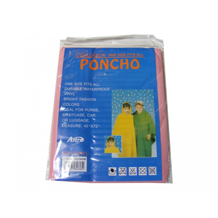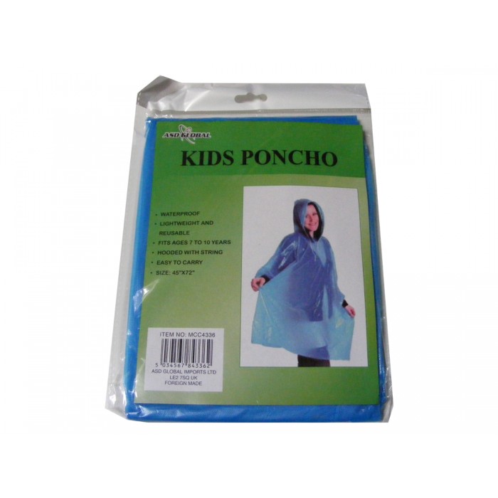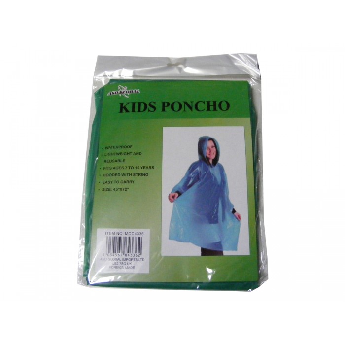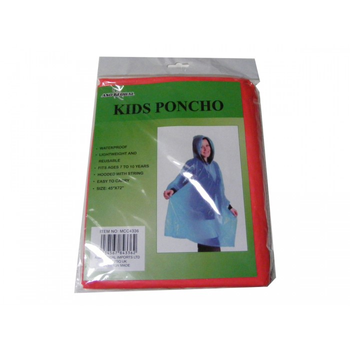 Childrens Plastic Poncho with Hood - One Size Upto 12 Years - Choice of 6 Colours
